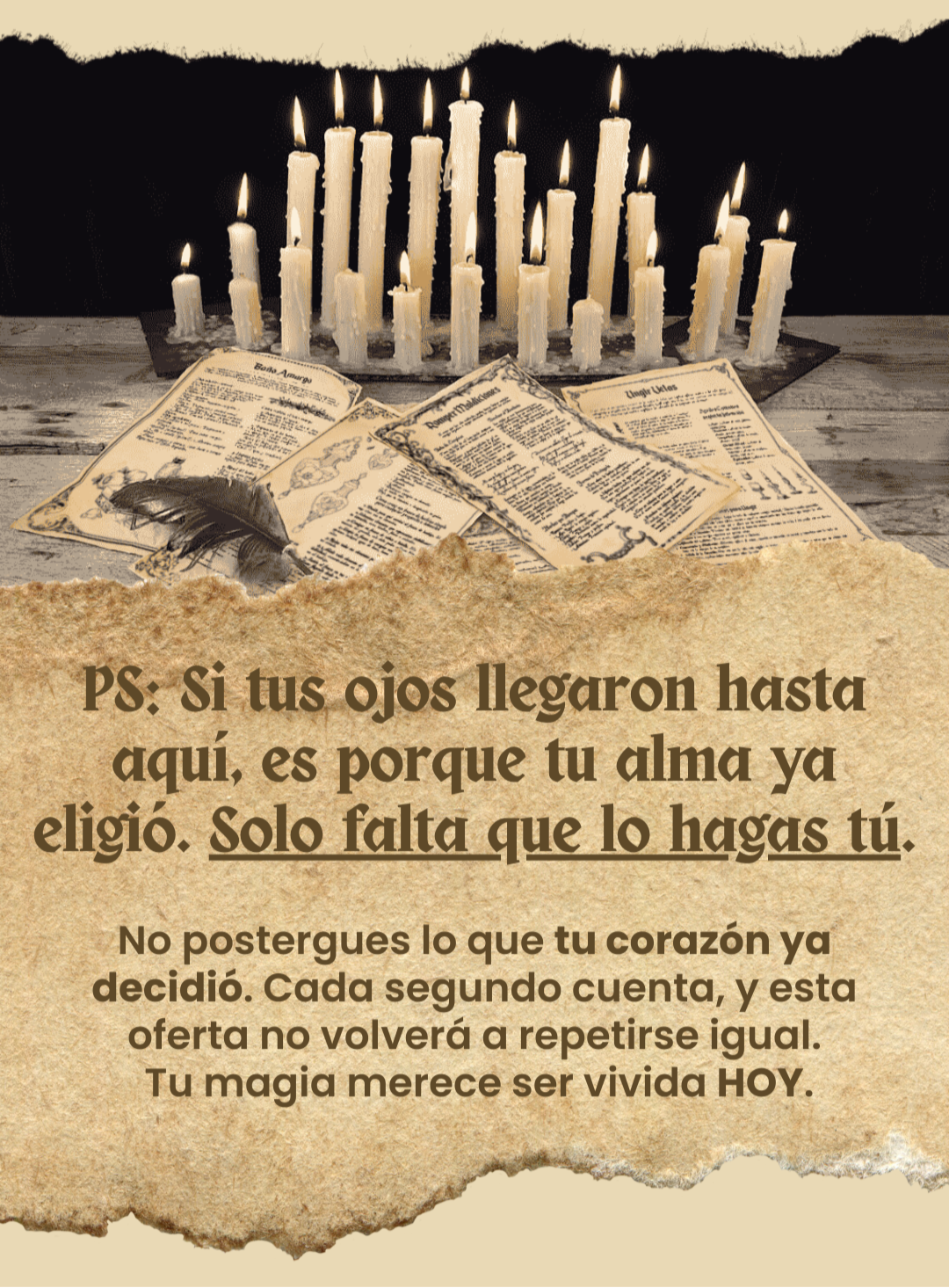 Mientras en internet encuentras fragmentos, teorías y rituales aislados, aquí tienes un camino claro, pensado para acompañarte paso a paso. Sin abrumarte. Sin confundirte. Sin perderte.