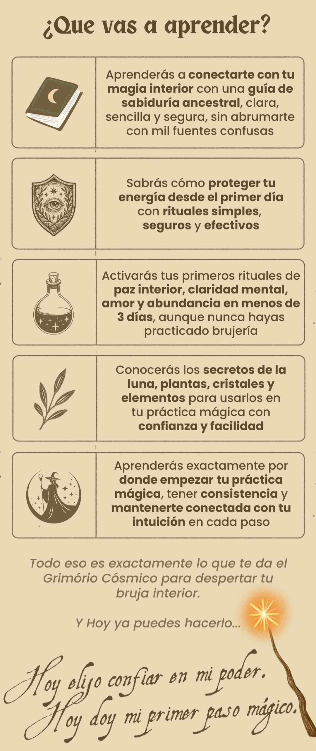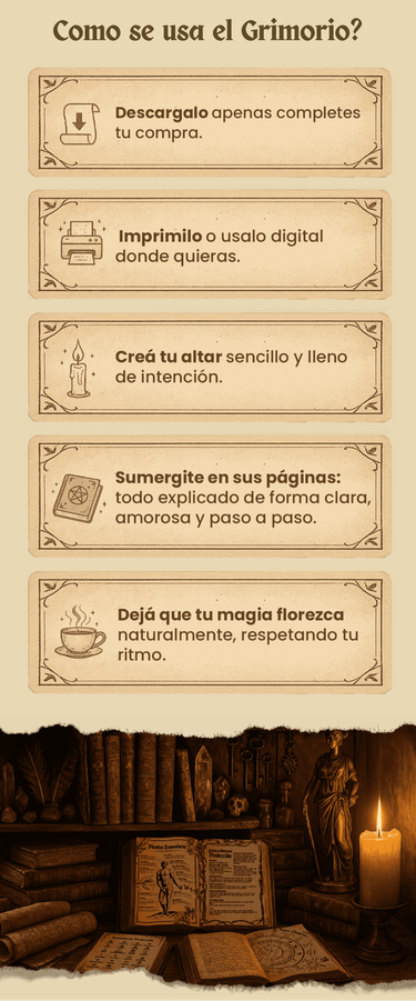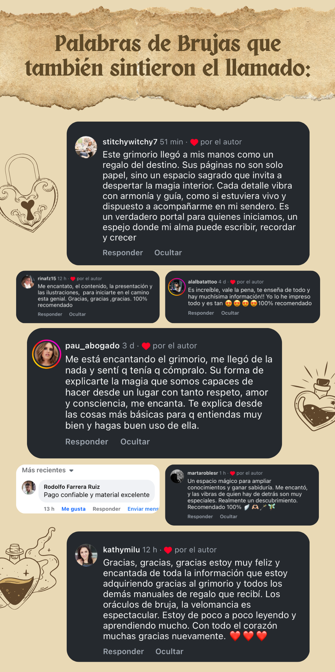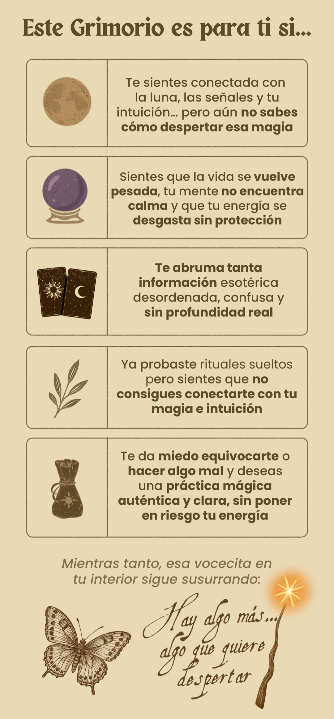 Justamente por eso es para ti.No necesitas experiencia previa. El grimorio está diseñado como una guía amorosa, paso a paso, sin reglas rígidas ni tecnicismos. No necesitas saber nada antes. Solo abrirte a recordar lo que ya vive dentro de ti.